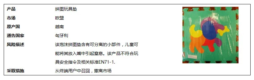 2020年3月,全球主要市場共有53例玩具產(chǎn)品召回信息,其中歐盟非食品類消費品快速預(yù)警系統(tǒng)(RAPEX)共發(fā)布45例,為發(fā)布玩具召回案例最多的系統(tǒng),另包括澳大利亞發(fā)布5例,美國發(fā)布2例和加拿大發(fā)布1例。